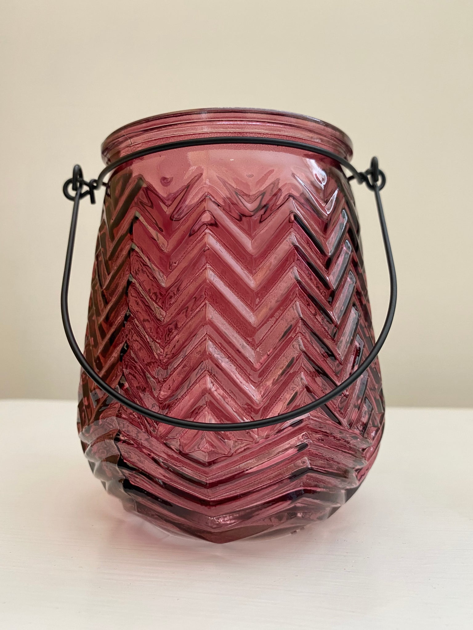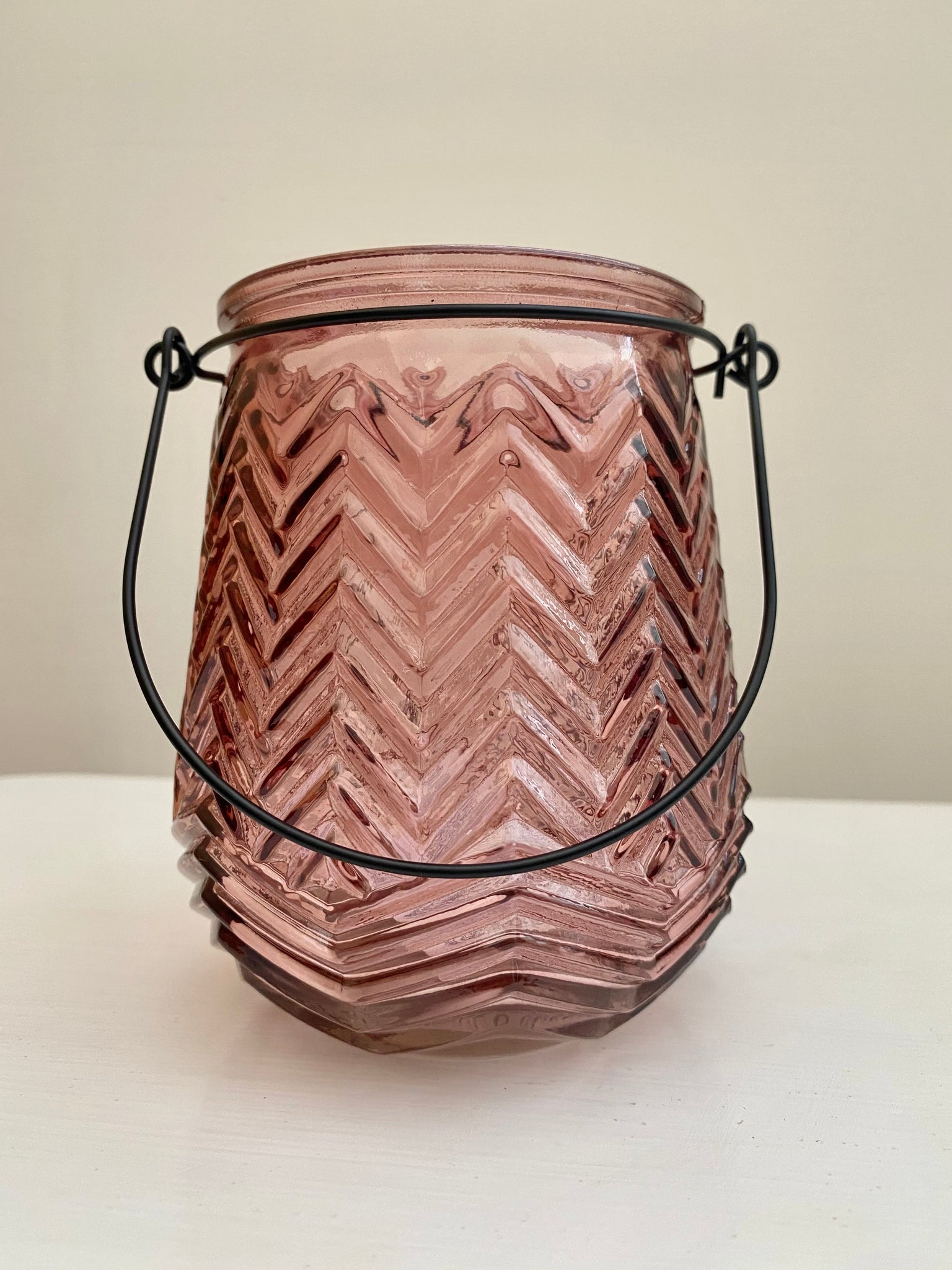 Embossed chevron design. Perfect for use as a vase or tea light holder.